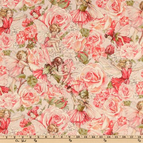 Licensed from the estate of Cicely Mary Barker to Michael Miller Fabrics this fabric features an allover design of sweet fairies in a rose garden. The color palette includes celedon rose peach and pink on an ivory background with metallic accents throughout. Use for quilting and craft projects as well as apparel and home decor accents.Check its out related products of 44'' Wide Michael Miller Sweet Flower Fairies Sweet Garden Rose Fabric By The Yard