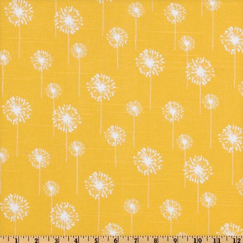Screen printed on cotton slub duck (slub cloth has a linen appearance) this versatile medium weight fabric is perfect for window accents (draperies valances curtains and swags) toss pillows bed skirts duvet covers slipcovers upholstery and other home decor accents. Create handbags tote bags aprons and more. Colors include ivory/white on a corn yellow background.Check its out related products of 54'' Wide Premier Prints Small Dandelion Slub White/Yellow Fabric By The Yard